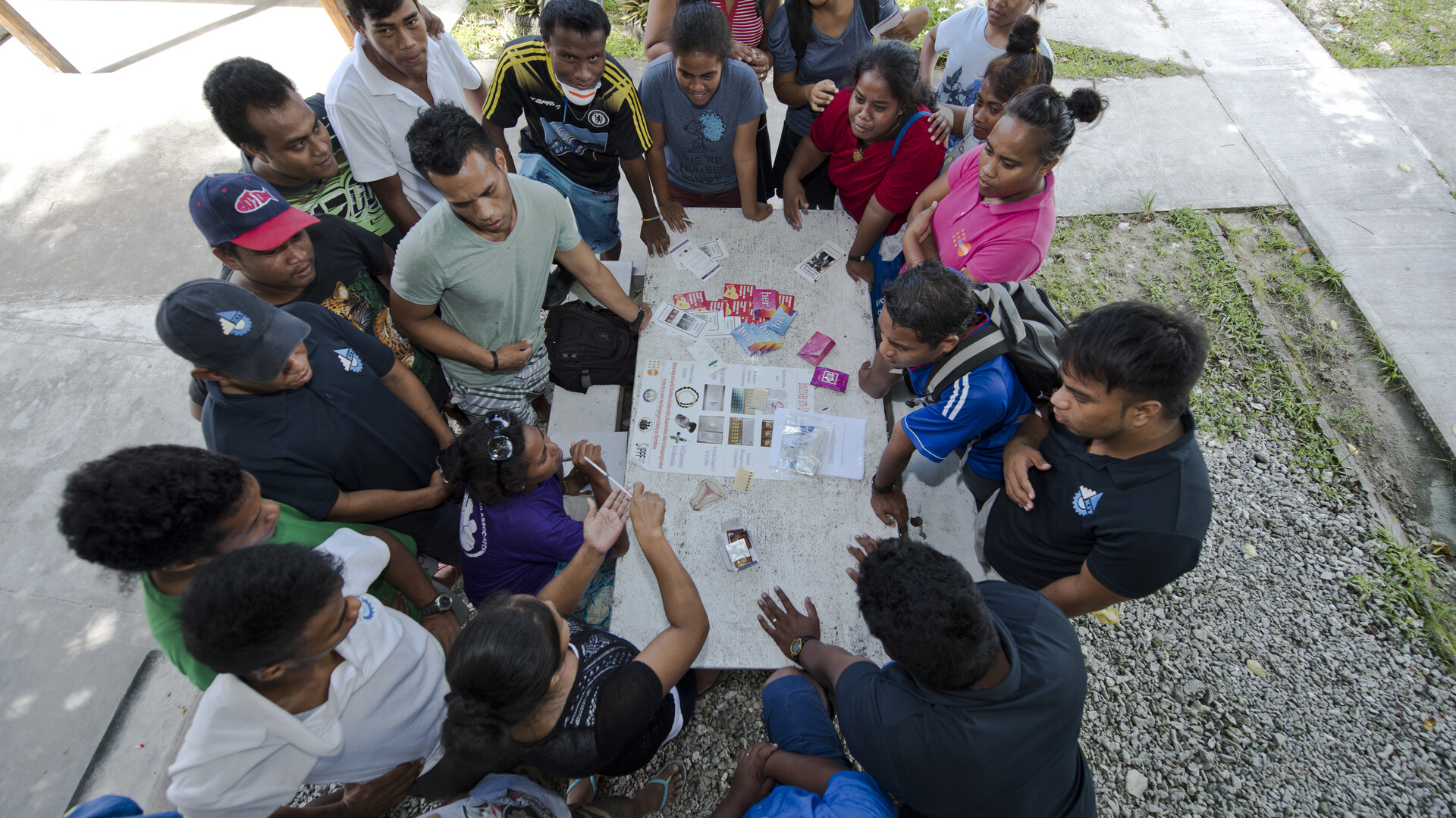 KFHA youth conducting Condom demo and flyer distribution during the Kiribati national day (Independence Day).